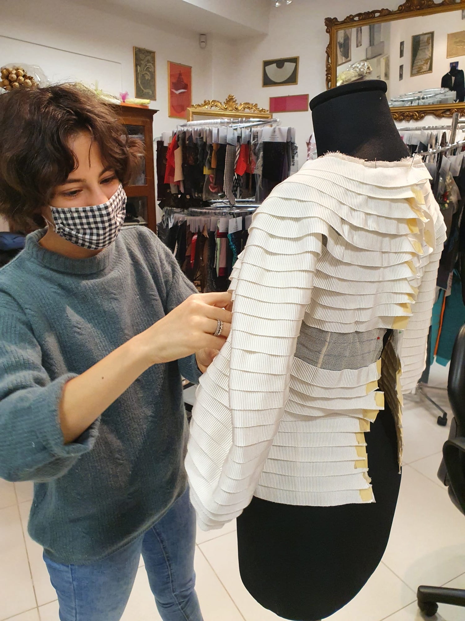 I fondi ottenuti si sono uniti alla mia formazione — corsi di sartoria e ricamo d’alta moda — e alla mia esperienza nel controllo qualità e nelle riparazioni, dando vita a qualcosa di unico.