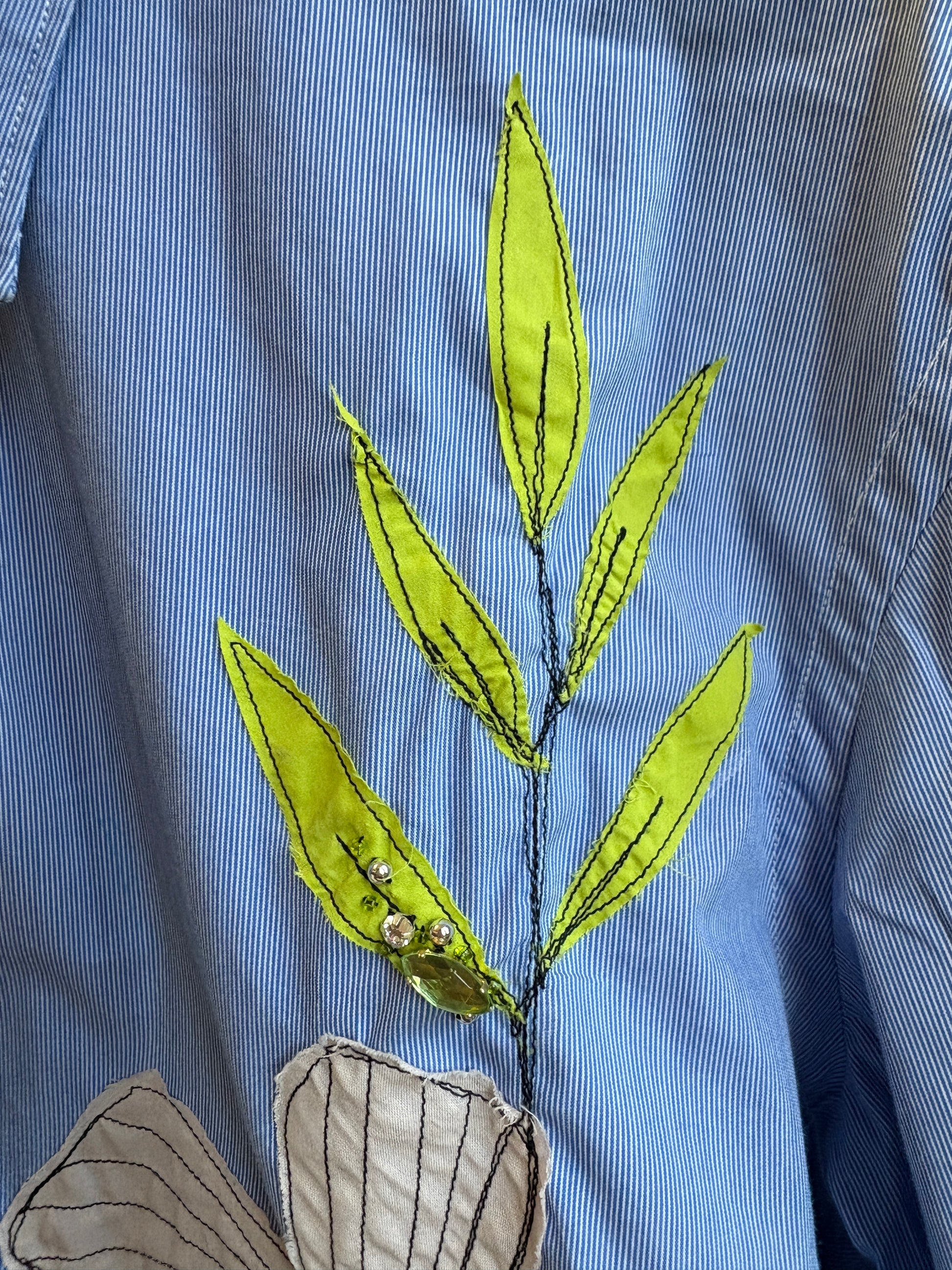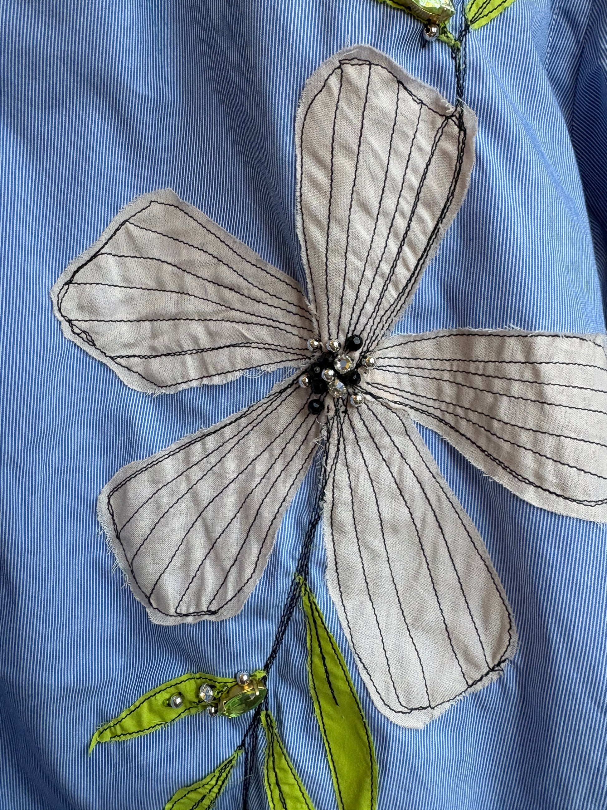 Questo è un capo second hand cucito e ricamato a mano con materiali di recupero: ogni pezzo è unico!