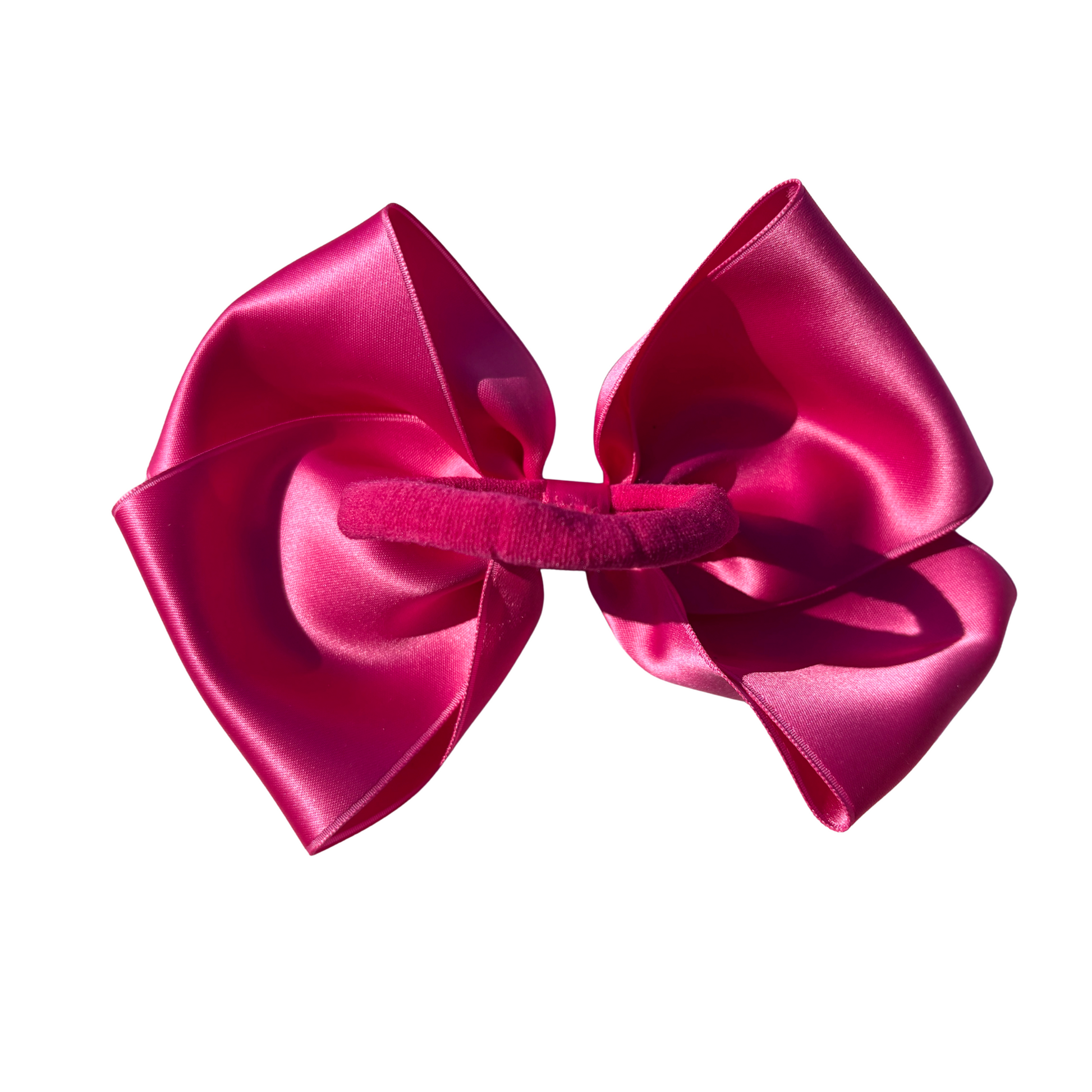 Doppio fiocco in nastro fucsia montato su elastico dello stesso colore