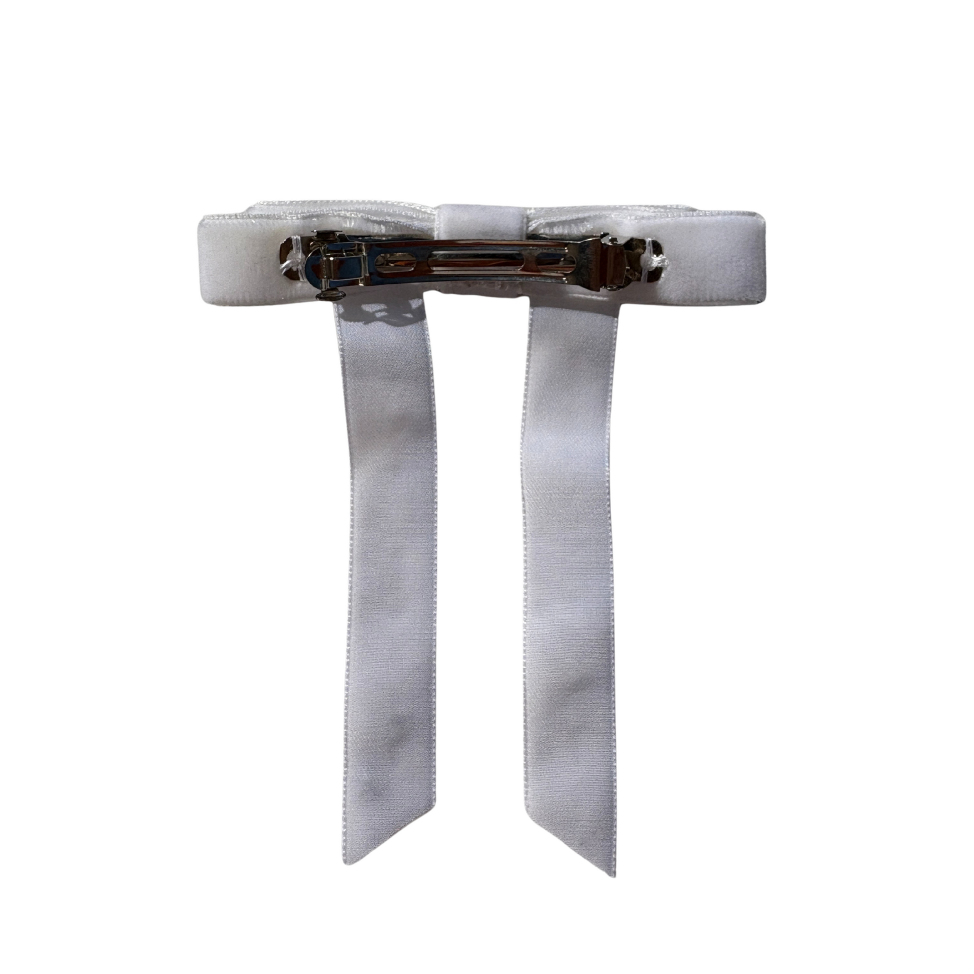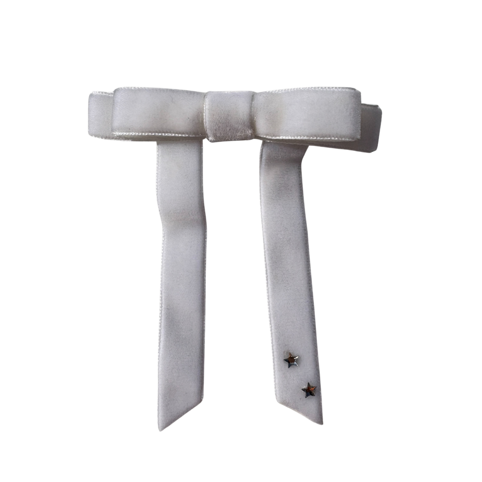 Doppio fiocco in nastro di velluto bianco con stelline Swarovski.