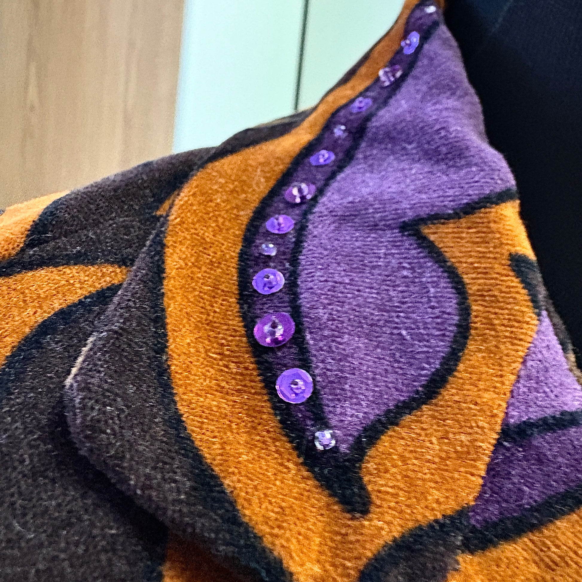 Questo è un capo second hand cucito e ricamato a mano con materiali di recupero: ogni pezzo è unico!