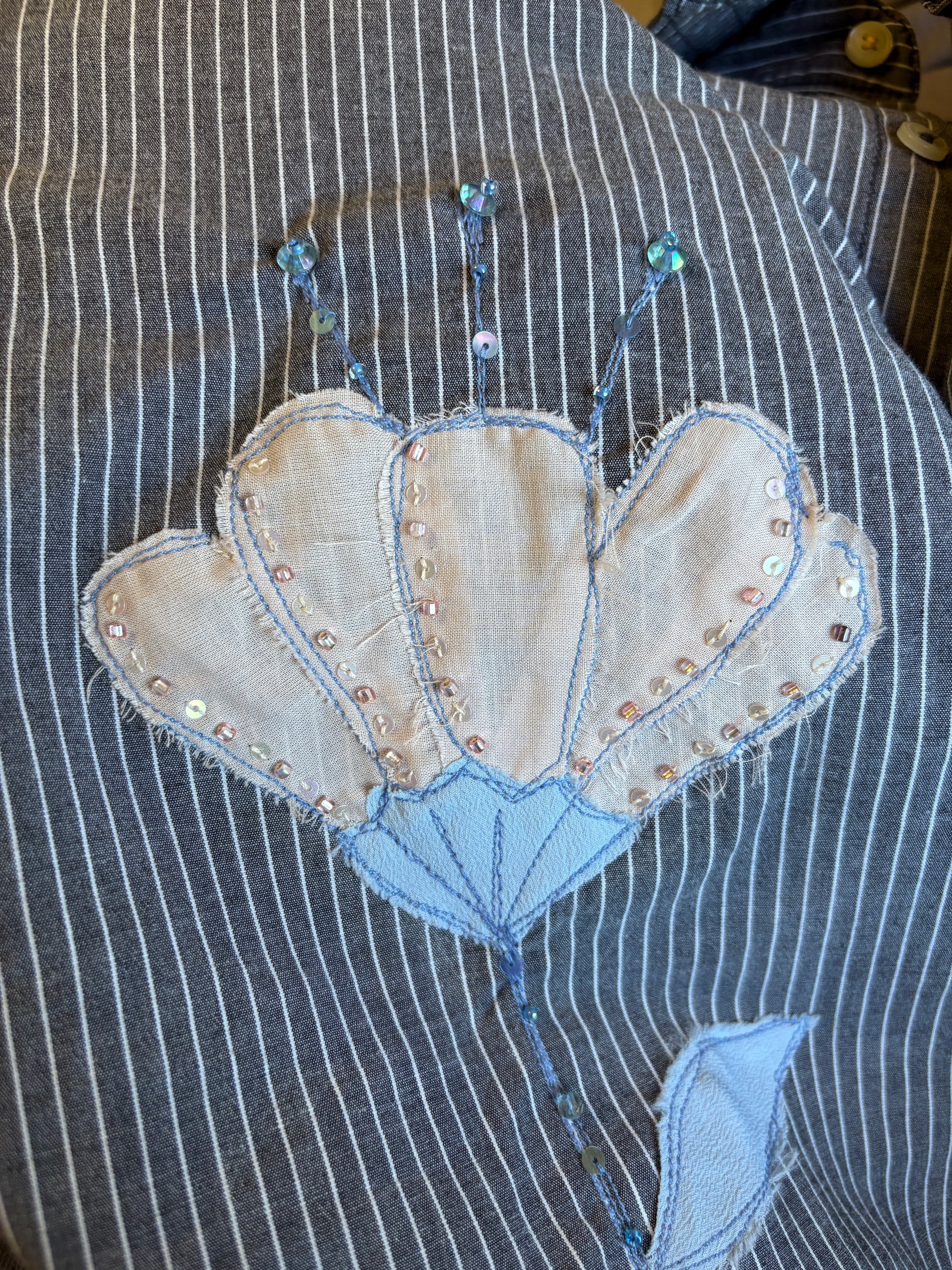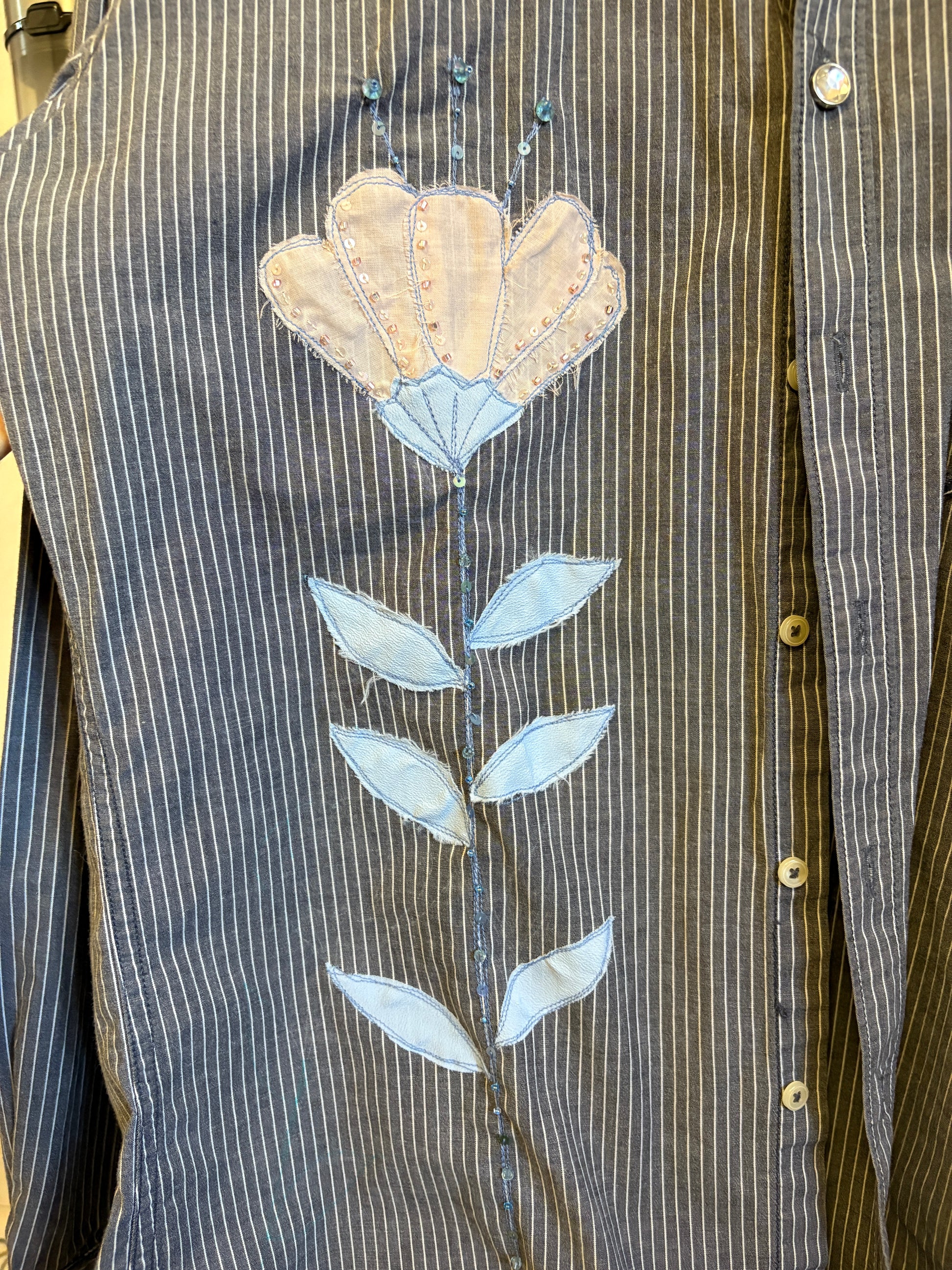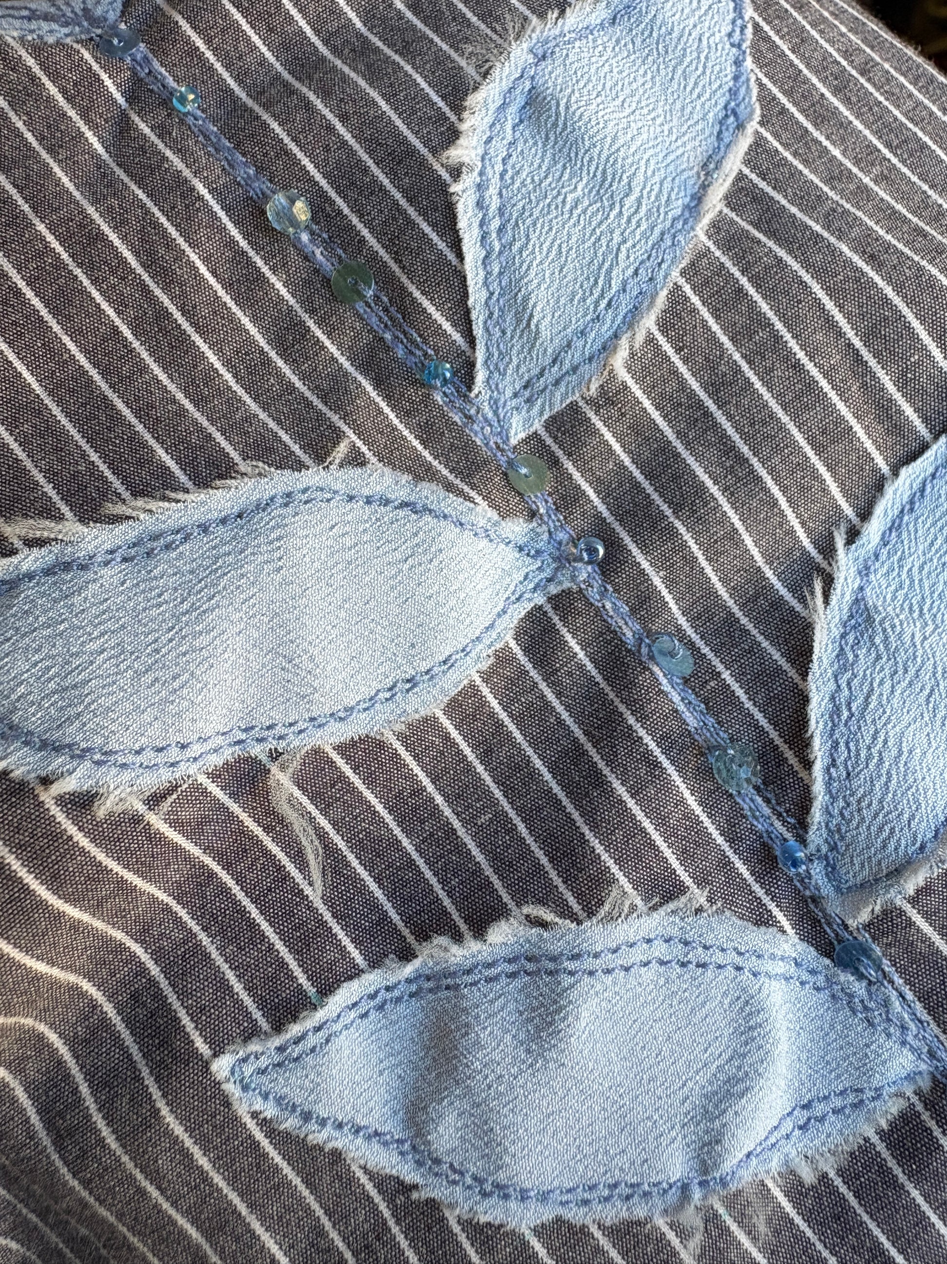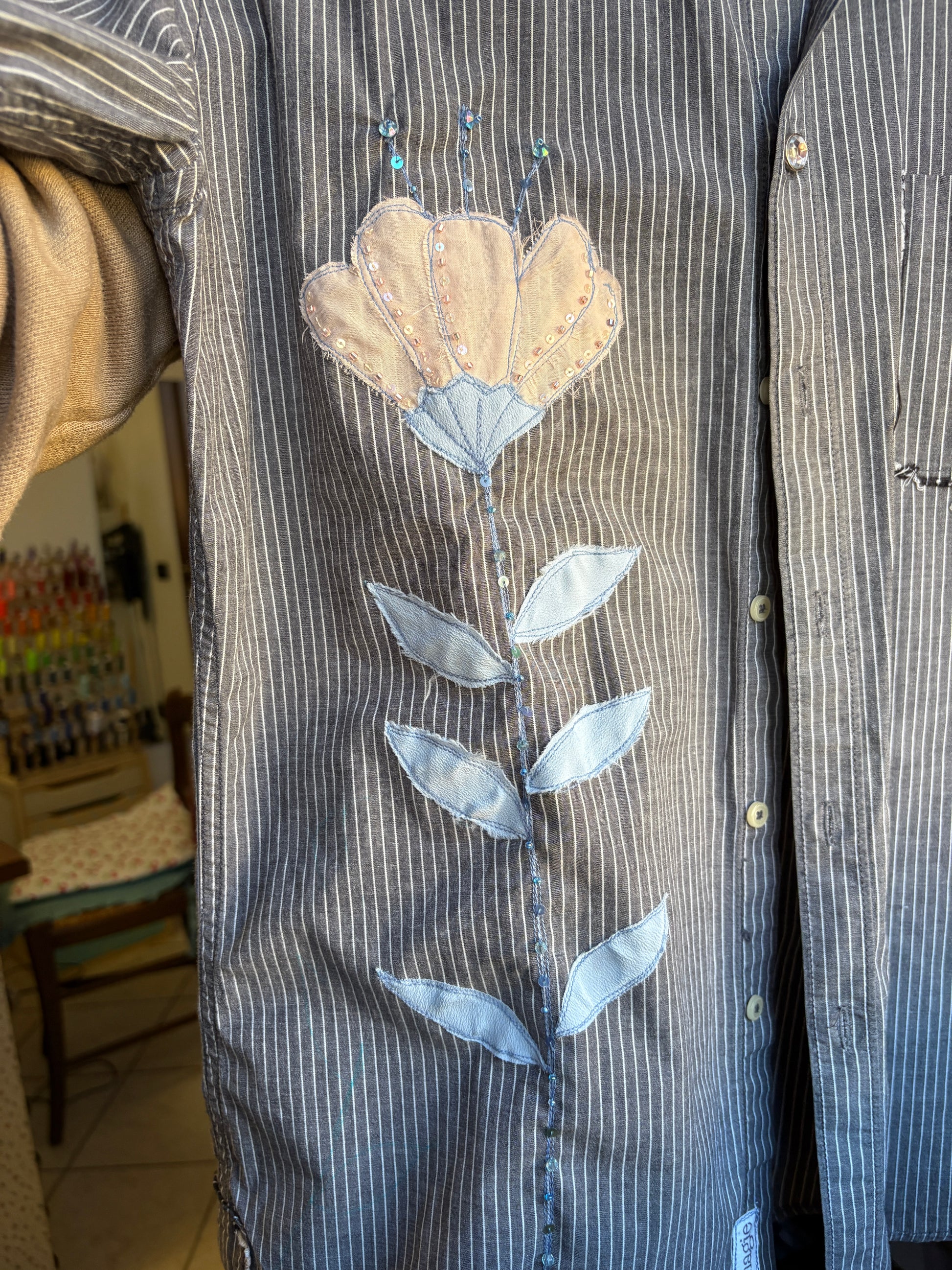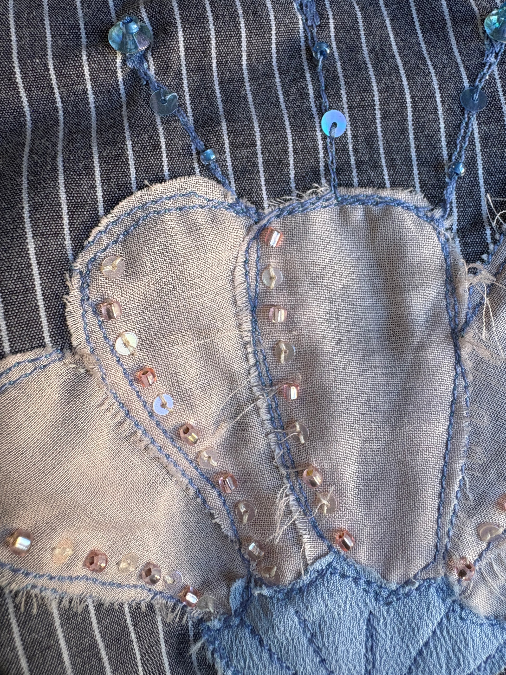 Questo è un capo second hand cucito e ricamato a mano con materiali di recupero: ogni pezzo è unico!