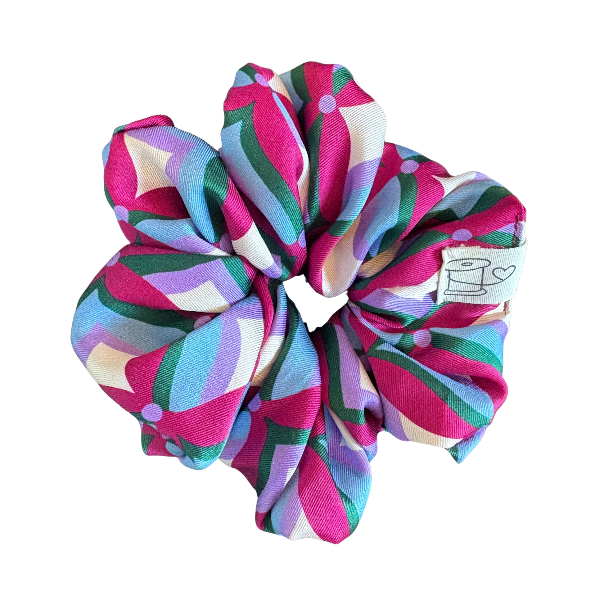 Elastico realizzato artigianalmente con tessuti di recupero provenienti da avanzi di campionario, soffitte di amici o negozi di seconda mano.