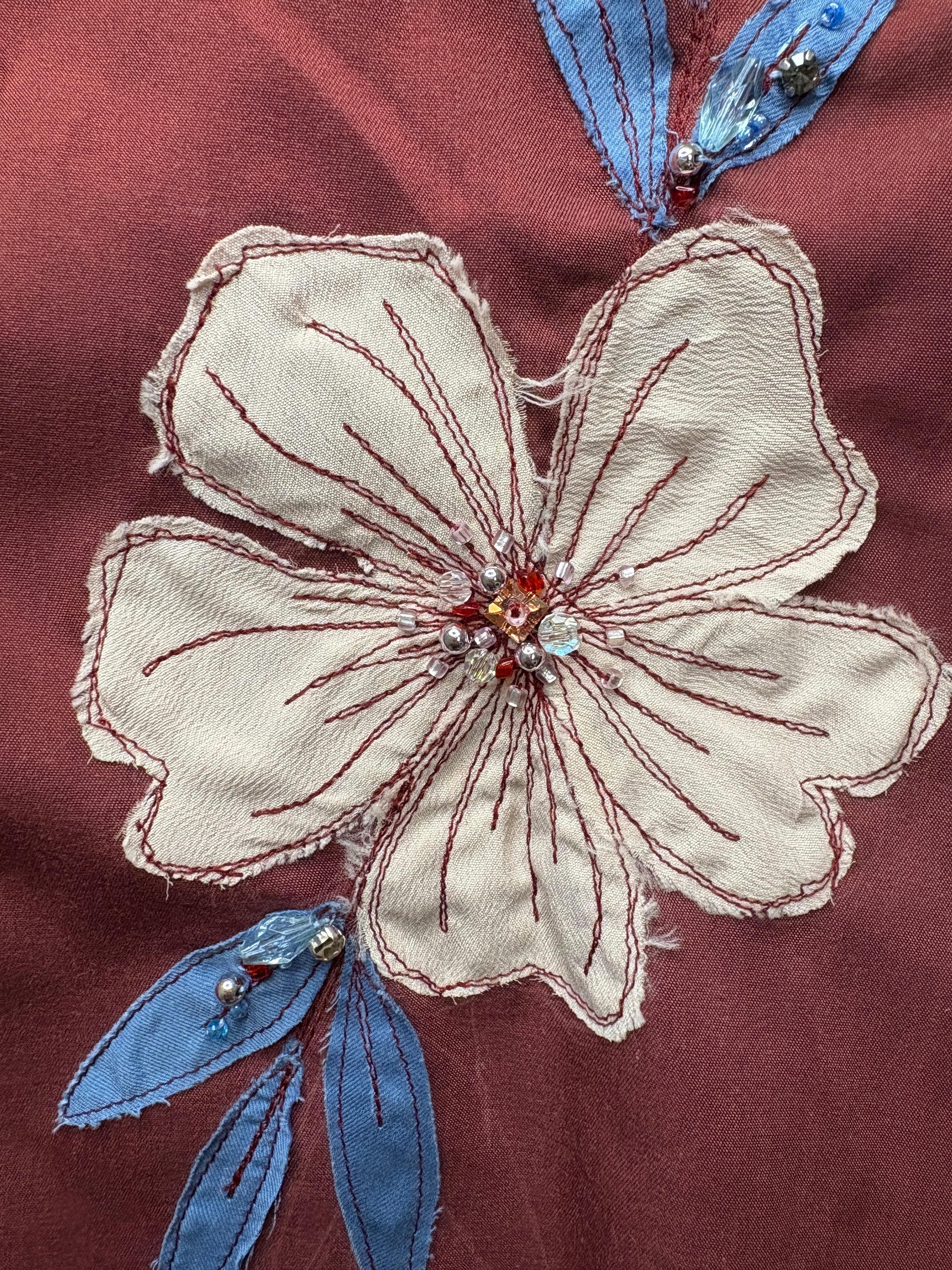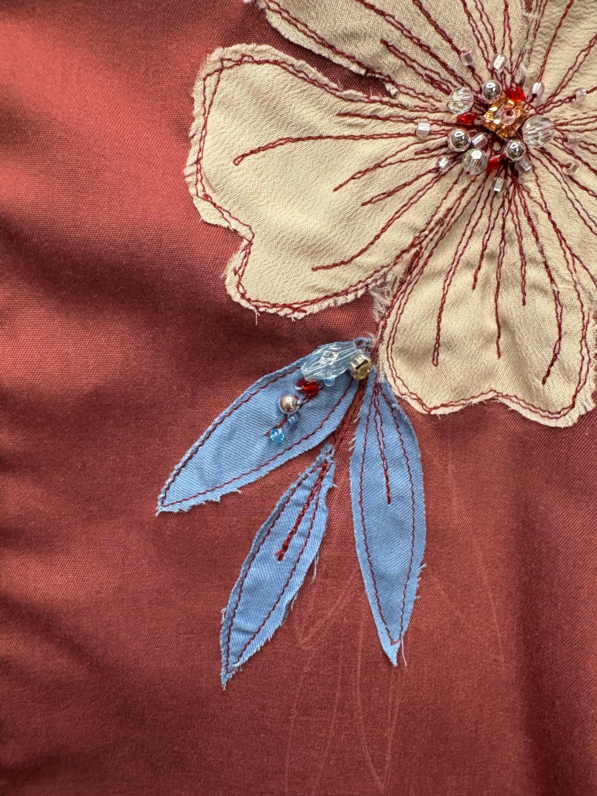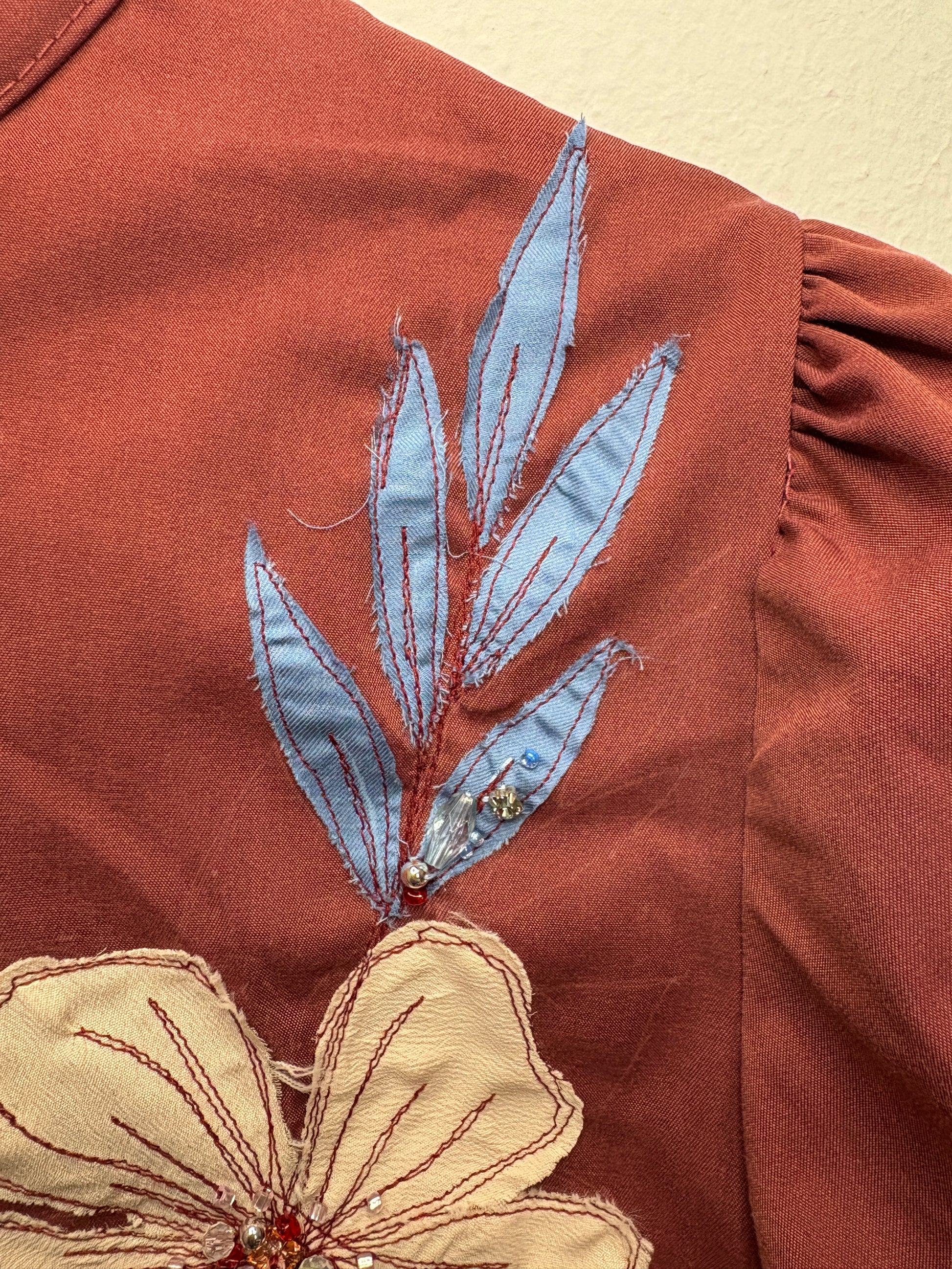 Questo è un capo second hand cucito e ricamato a mano con materiali di recupero: ogni pezzo è unico!